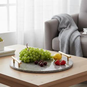 Indulge in the timeless elegance of the Marble Majesty Round Handcrafted Marble Tray. Perfect for anyone who appreciates luxury, sophistication, and exceptional craftsmanship.