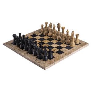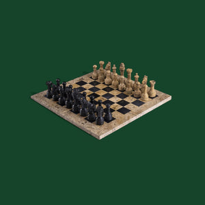 A bold and elegant chess set, handcrafted from pinecone-toned and deep black marble. Designed for both play and display, it’s a true statement piece for any space.