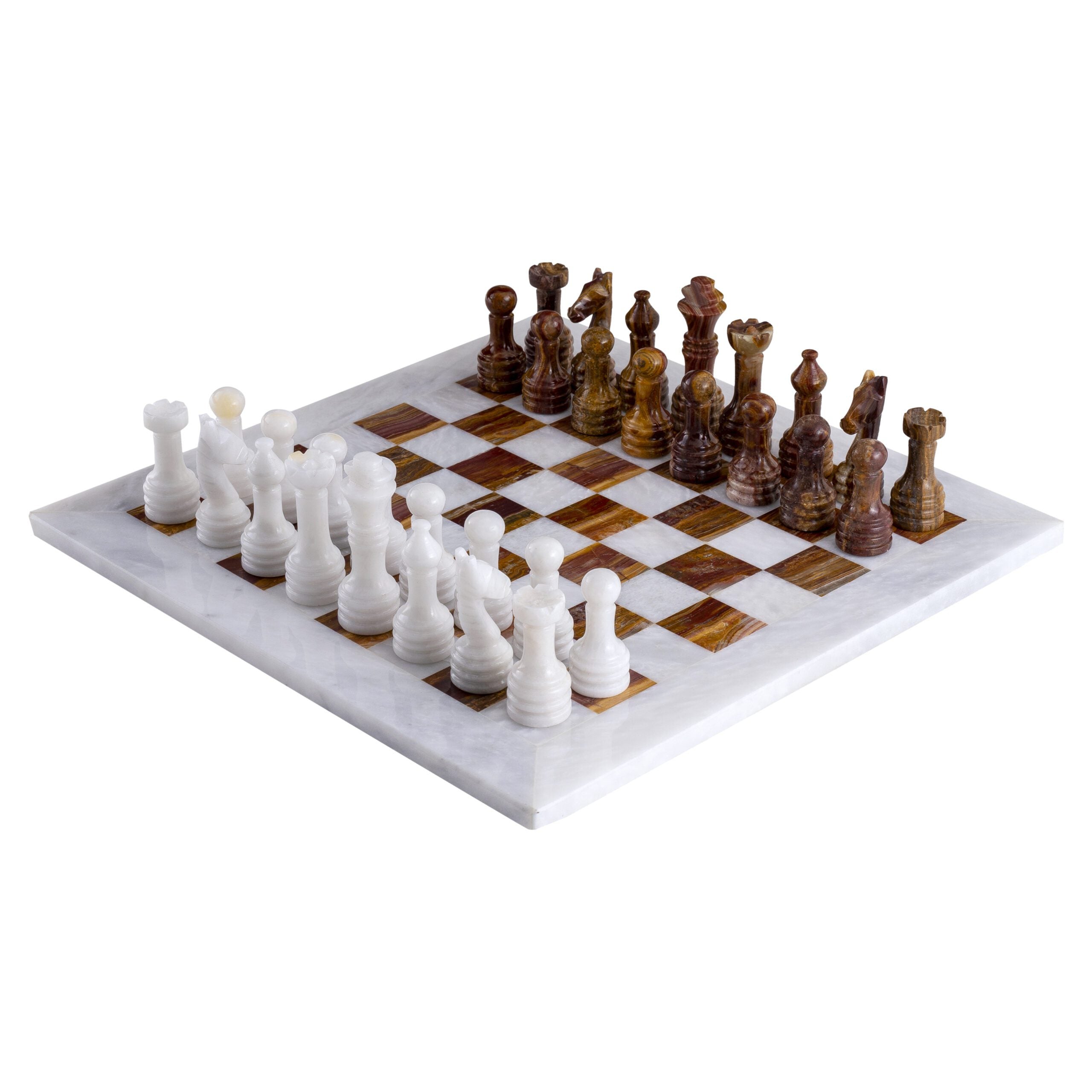 A handcrafted chess set made from premium white and driftwood marble. Elegant, durable, and timeless — perfect for play or display.