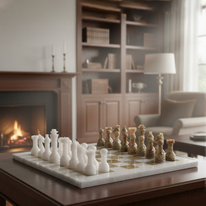 A handcrafted masterpiece from Pakistan’s finest marble, this chess set combines timeless elegance with refined gameplay. The striking contrast of white and onyx marble creates a sophisticated display, making it both a luxury décor piece and a functional game board.