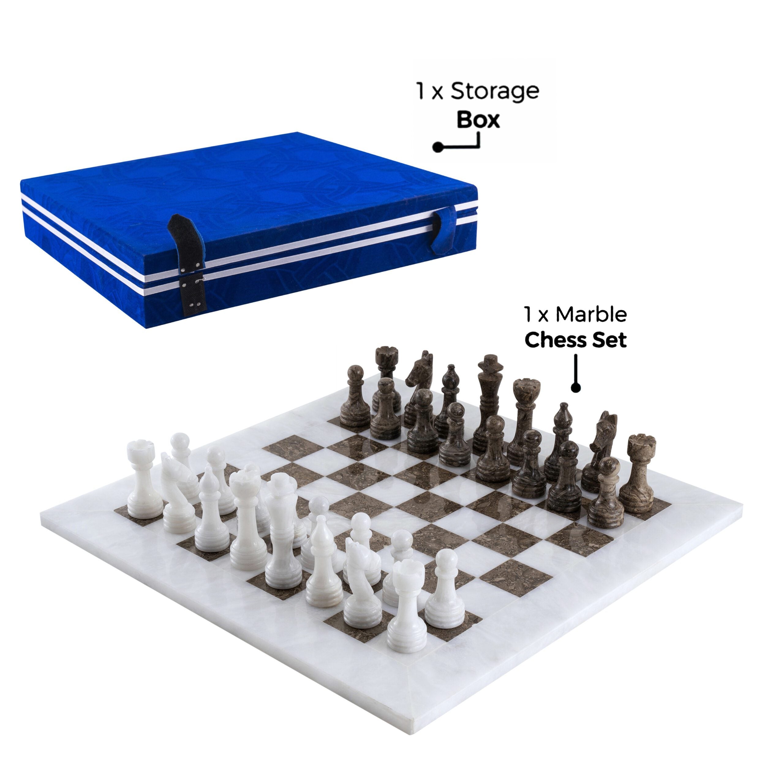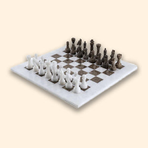 A masterpiece of Pakistani craftsmanship, this marble chess set is the perfect blend of luxury and strategy. Hand-carved from natural marble, each piece highlights unique veining and timeless elegance, making it as much a statement décor piece as a game.
