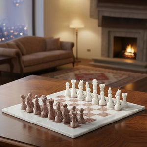 White and Pink Marble Chess Set – A Masterpiece of Elegance and Functionality